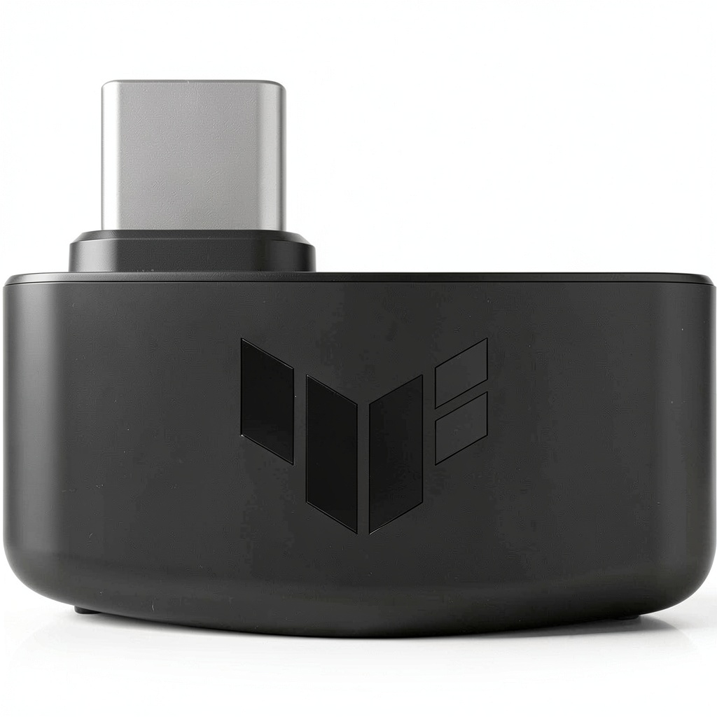 The ASUS TUF Gaming H1 Wireless headset is engineered for serious gamers seeking reliable performance and immersive sound. It utilizes a 2.4 GHz wireless connection via a USB-C dongle, providing a robust link with up to 25 meters of range and minimal latency. Equipped with 40 mm ASUS Essence drivers and airtight chamber technology, it delivers rich, deep bass and crystal-clear audio details. Virtual 7.1 surround sound enhances spatial awareness in games, adjustable through Windows Sonic and Armoury Crate software. The headset weighs only 295 grams and features a suspension headband for extended comfort, supporting up to 15 hours of continuous use on a single charge. Its build includes a durable, minimalist design in black, tailored for long-lasting gaming sessions.