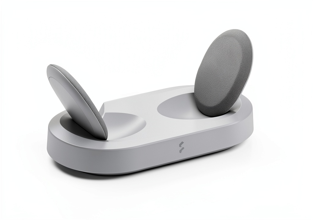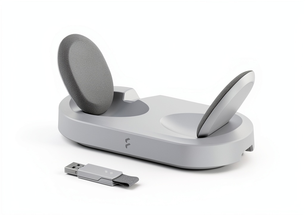 - Inductive charging stand with magnet-assisted docking for easy, cable-free power