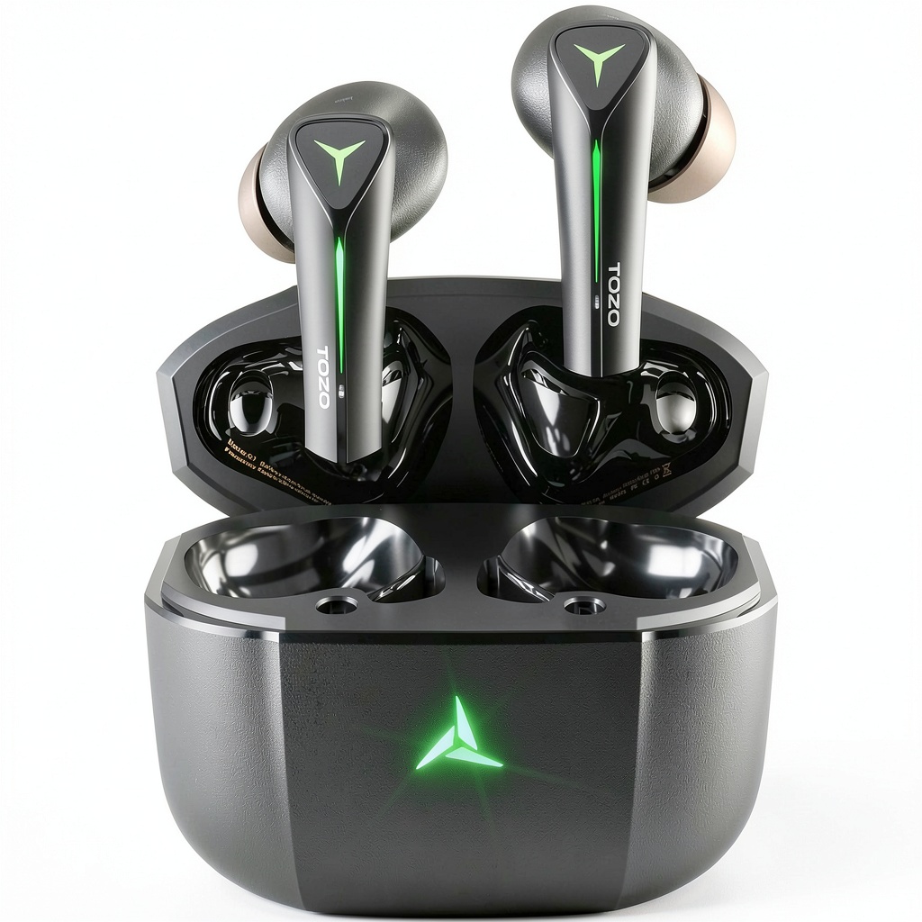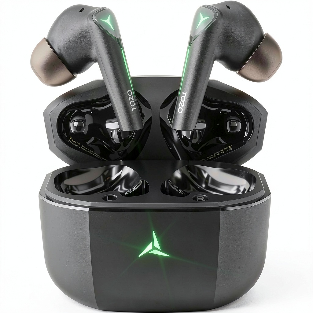 The TOZO G1S Gaming Pods are advanced Bluetooth wireless earbuds designed for gamers and audio enthusiasts. These earbuds feature low latency technology to minimize audio delay, ensuring synchronized sound during gameplay. Crafted with durable materials and an ergonomic design, they offer a secure and comfortable fit for long sessions. Key specifications include Bluetooth connectivity, built-in microphone for calls, and a compact charging case for portability. The black finish adds a sleek, modern look suitable for various settings.
